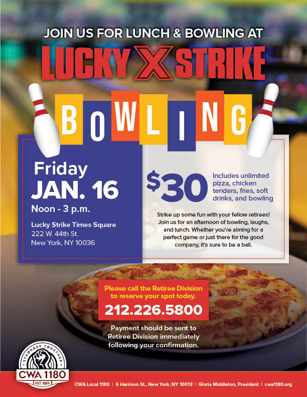 Call the Retiree Division to reserve your spot today: 212.226.5800